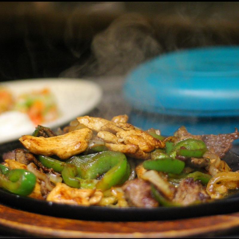 Beef or chicken fajitas, onions, bell peppers, and jalapenos • +$1.50 extra mixed.